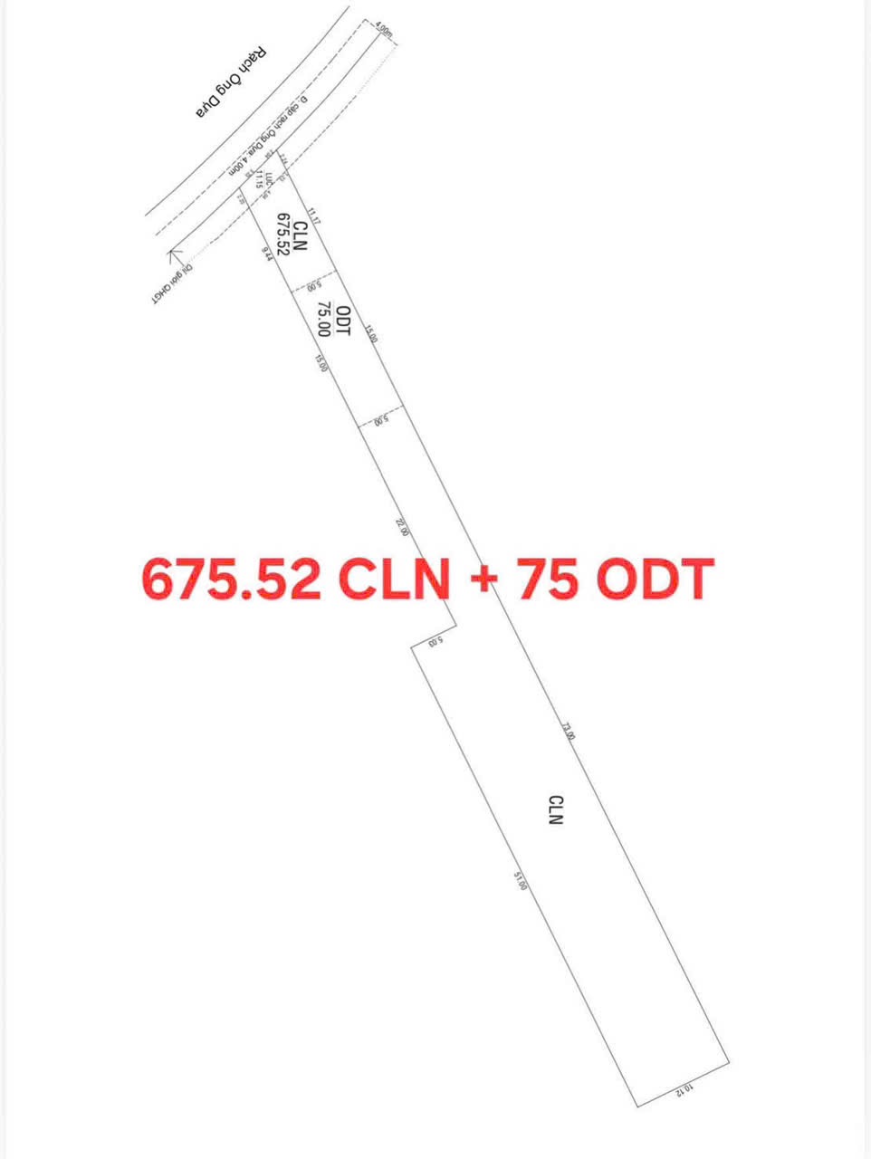 - Diện tích: Ngang 5m, nở hậu 10m, dài 47m nở ra theo sơ đồ diện tích. Có 75 m2 THỔ CƯ và 675m2 đất Vườn, 11m2 đất LUC.
