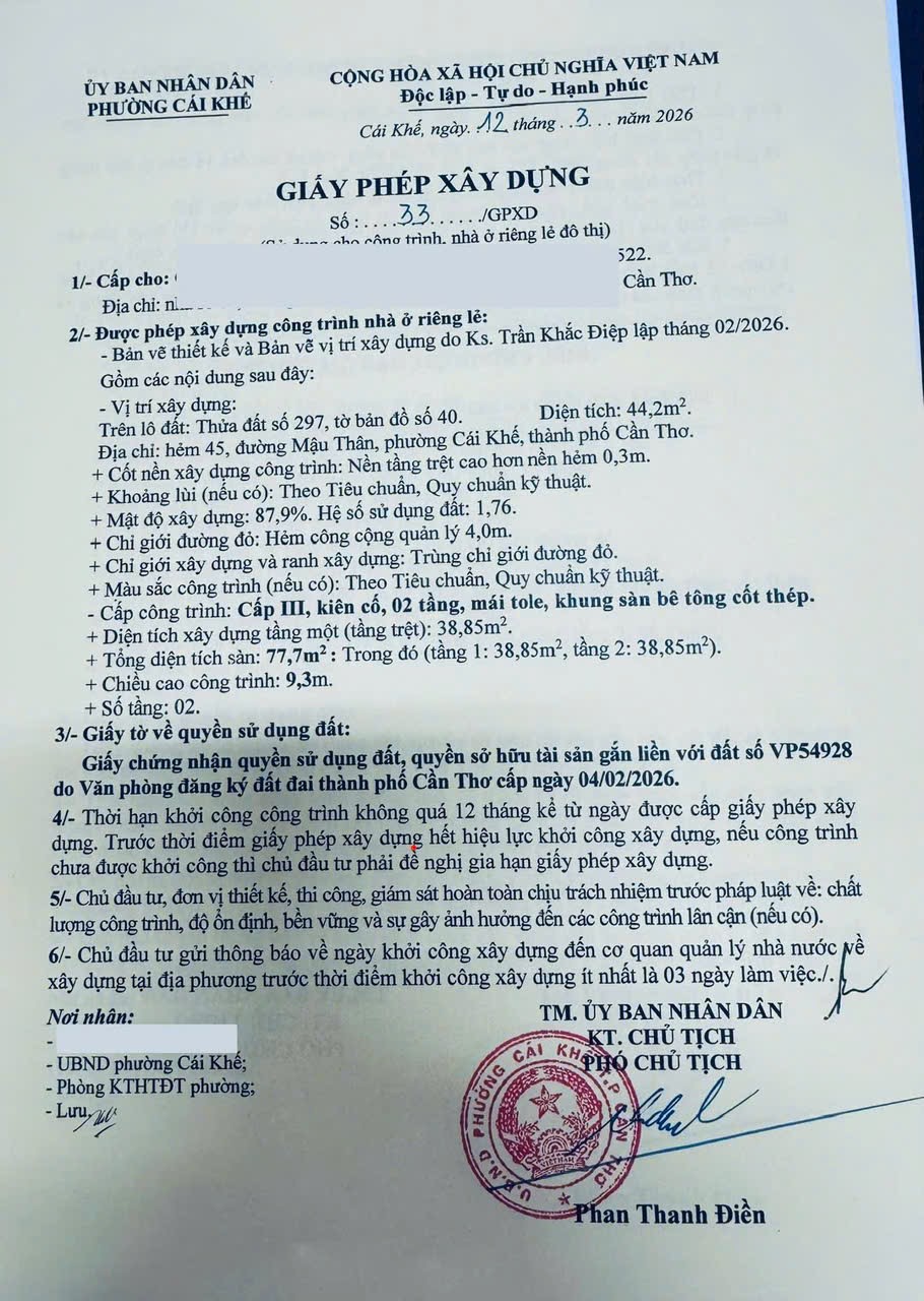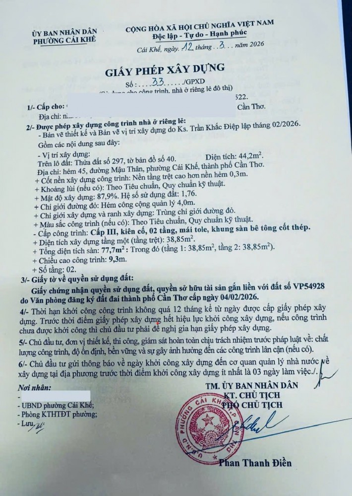 - Pháp lý sổ hồng thổ cư, tặng giấy phép xây dựng trệt lầu.