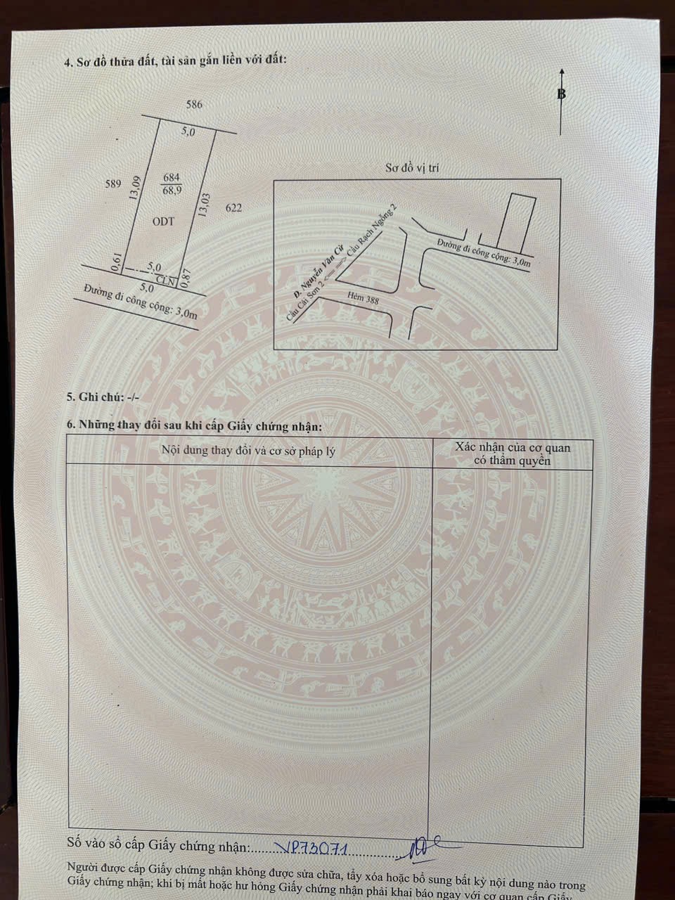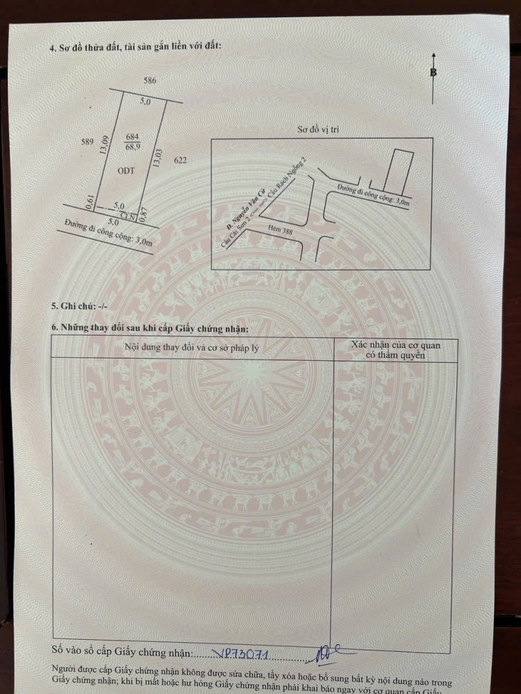 - Pháp lý sổ hồng odt cấp phép xây dựng trệt 2 lầu.