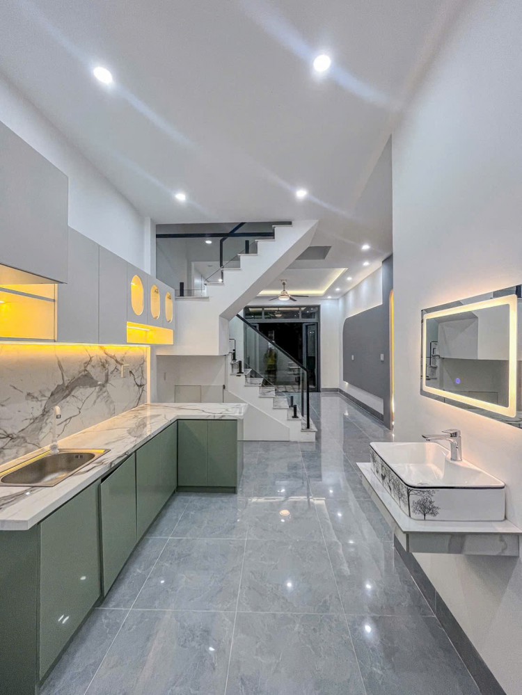 - Kết cấu: Nhà trệt lầu xây kiên cố, vị trí đẹp, thiết kế hiện đại gồm vỉa hè đậu xe rộng rãi, phòng khách, không gian bếp, 2 phòng ngủ, 2 toillet, ban công thoáng mát