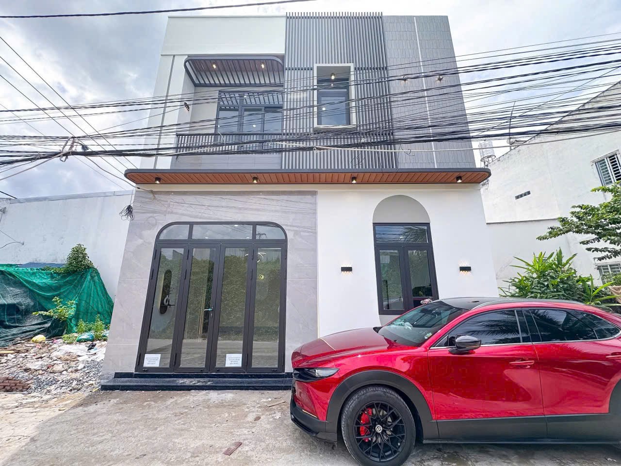 Ô tô đậu trước nhà.