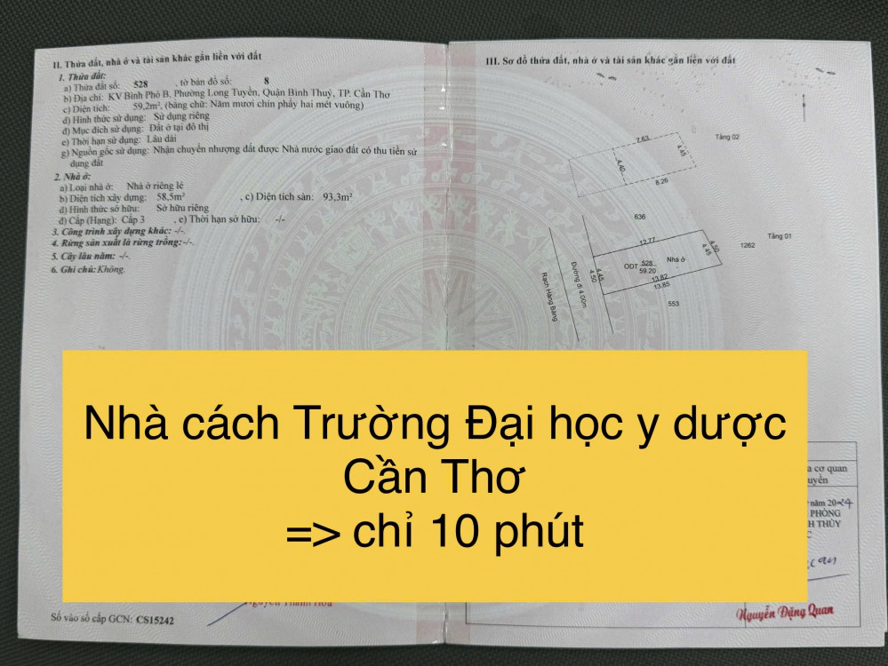 - Gần chợ Bà Bộ + Đại học Y Dược Cần Thơ (10 phút)Thuộc P. Long Tuyền – khu dân cư ổn định