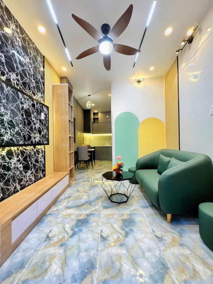 Kết cấu: Trệt lầu đúc kiên cố, thiết kế hiện đại, tối ưu không gian với phòng khách, vách tivi, không gian bếp hiện đại, 2 phòng ngủ, 2 toilet, ban công.