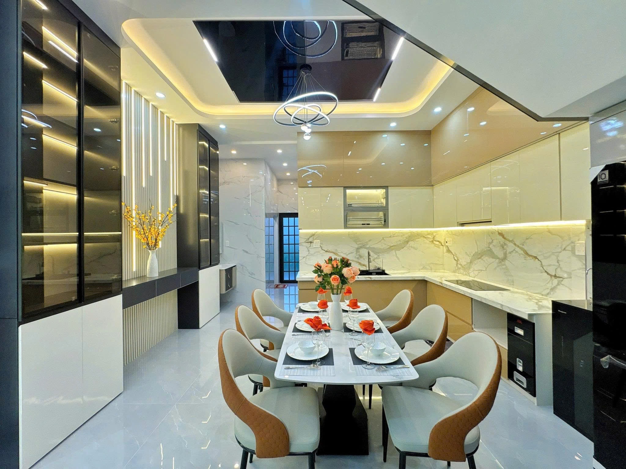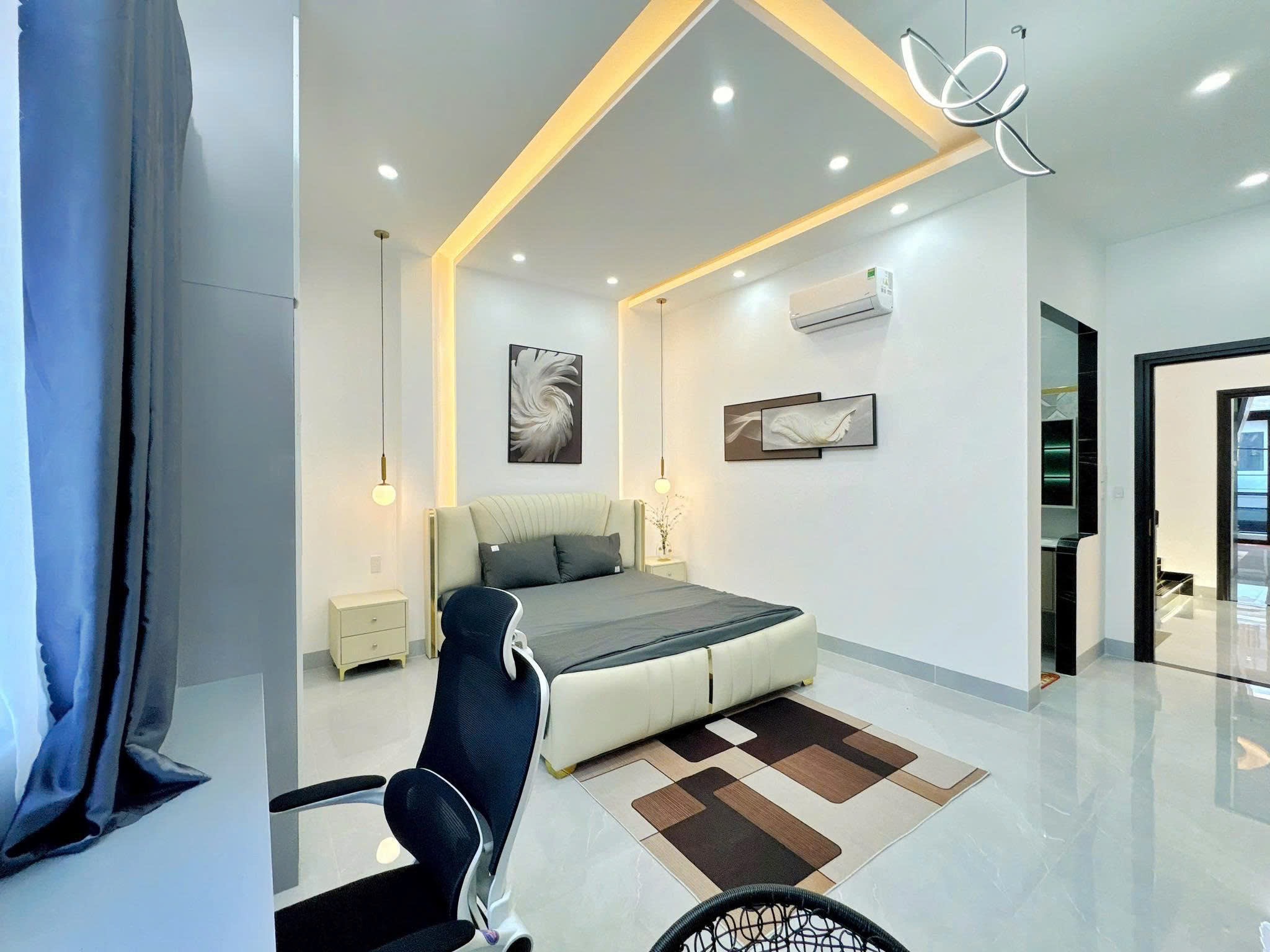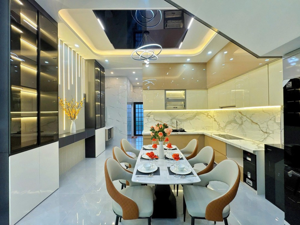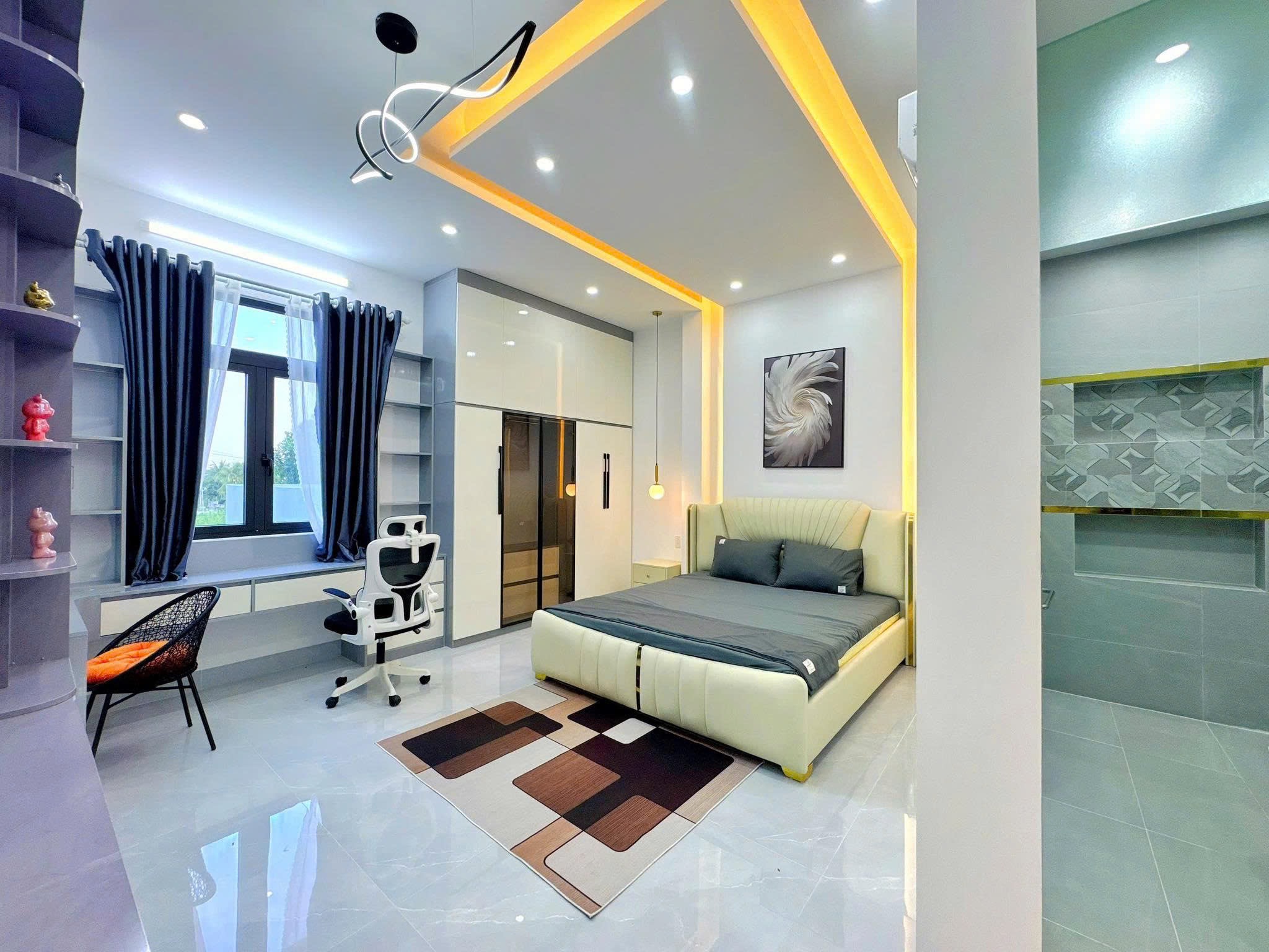 - Kết cấu: Nhà 1 Trệt 2 Lầu xây mới kiên cố, full nội thất cao cấp, phòng khách rộng, phòng thờ, 4 phòng ngủ, không gian bếp, 4 toillet, sân phơi, ban công thoáng mát