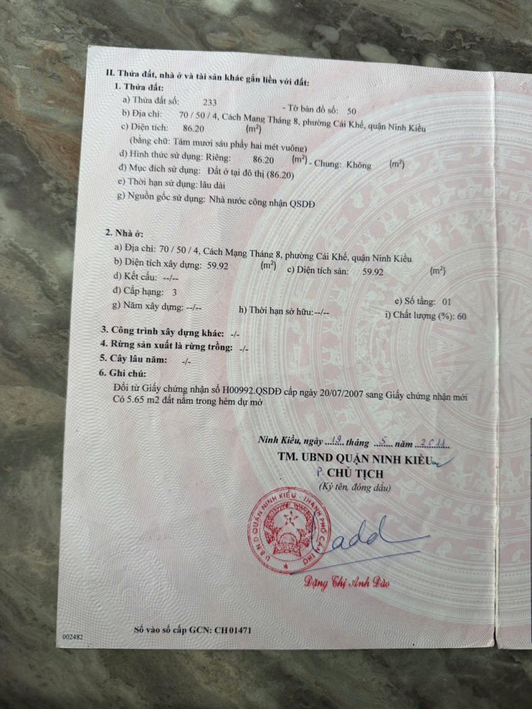 - Pháp lý thổ cư , sổ hồng hoàn công