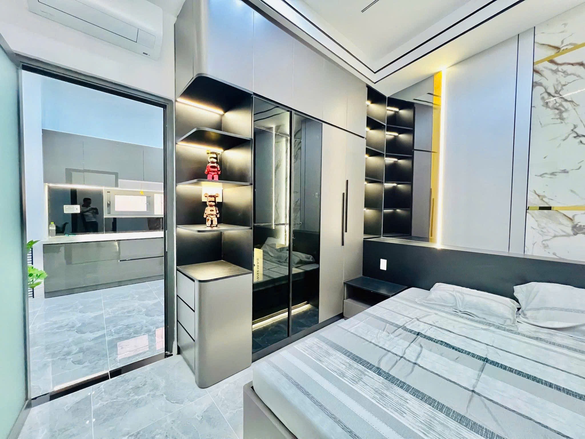 Nhà trang bị full nội thất :rèm full cửa , sofa phòng khách , 3 bộ giường nệm - tủ quần áo - bàn trang điểm, 3 điều hoà samsung inveter , máy nước nóng năng lượng , cây cảnh và phụ kiện trang trí .